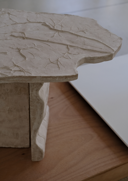 A travers le volume, j’ai commencé à matérialiser des phénomènes naturels, comme avec la table basse présentée dans l’exposition Horizon – expériences de la matière. J’ai aussi travaillé à la création d’objets et de modules en béton qui seront exposés en avril 2026 dans le showroom d’Ananbô, une boutique de papiers peints panoramiques de luxe. Le béton, souvent diabolisé quand on aime la nature, est alors réinvesti pour nos intérieurs, devenant ainsi « compatible » avec l’imaginaire forestier.