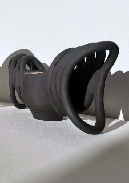 Anne Agbadou-Masson / atelier Anneagma, partage cette exigence du geste mais dans le domaine de la céramique. Entre grès, porcelaine et faïence, elle explore le geste, la transformation par le feu et le lien charnel à la matière. Inspirée par son métissage et une mémoire à la croisée de l’Afrique et de l’Europe, elle crée des formes organiques et expressives, proches de la sculpture. Ses pièces uniques, traduisent une tension entre puissance et délicatesse, où chaque volume semble porter la trace d’une énergie vitale et d’un héritage intérieur. Ensemble, ces créateurs traduisent, chacun à leur manière, la force du geste et la profondeur du lien entre la main et la matière.